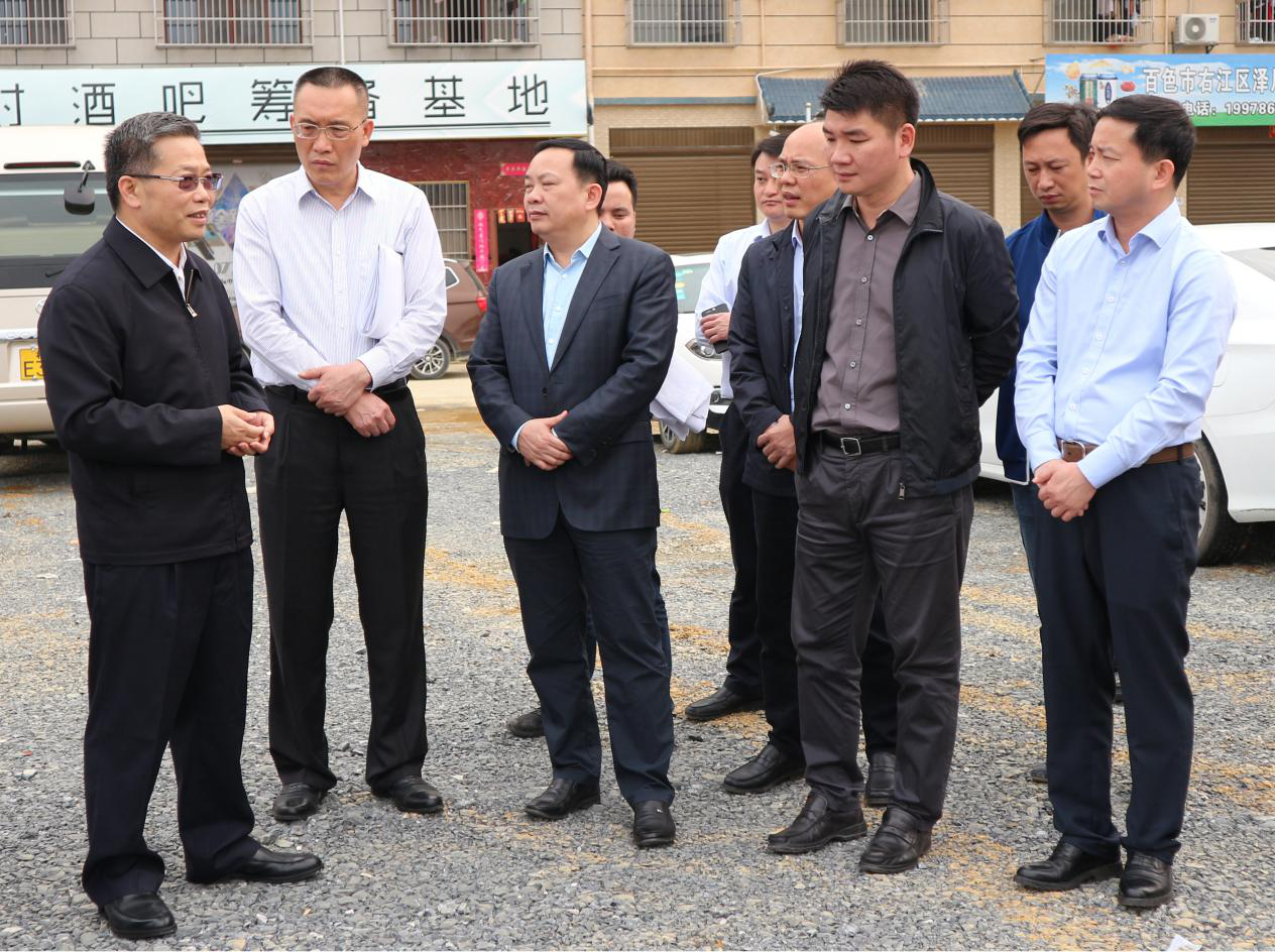 ??? 自治區政協(xié)副主席、百色市委書(shū)記、百色市人大常委會(huì )主任彭曉春一行到公司負責的棚戶(hù)區改造項目檢查工作進(jìn)展情況,百色市委秘書(shū)長(cháng)藍樹(shù)東、右江區委書(shū)記黃永才、公司經(jīng)營(yíng)管理指導工作小組組長(cháng)李勇春等領(lǐng)導陪同。?(通訊員:金彥彤)