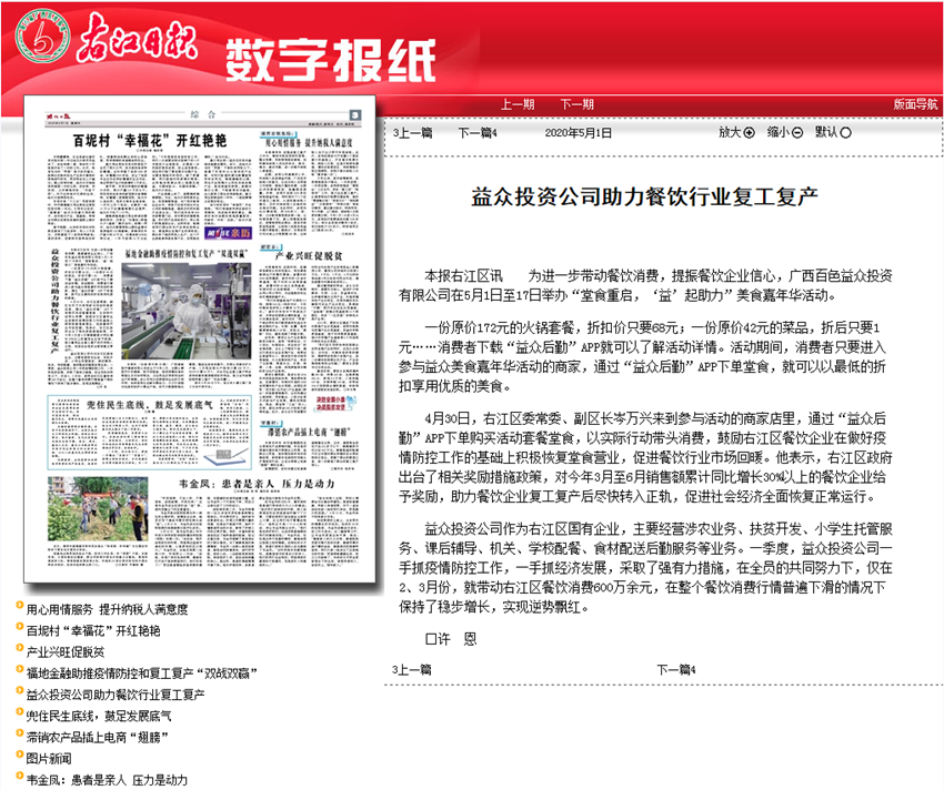 益眾投資公司助力餐飲行業(yè)復工復產(chǎn)