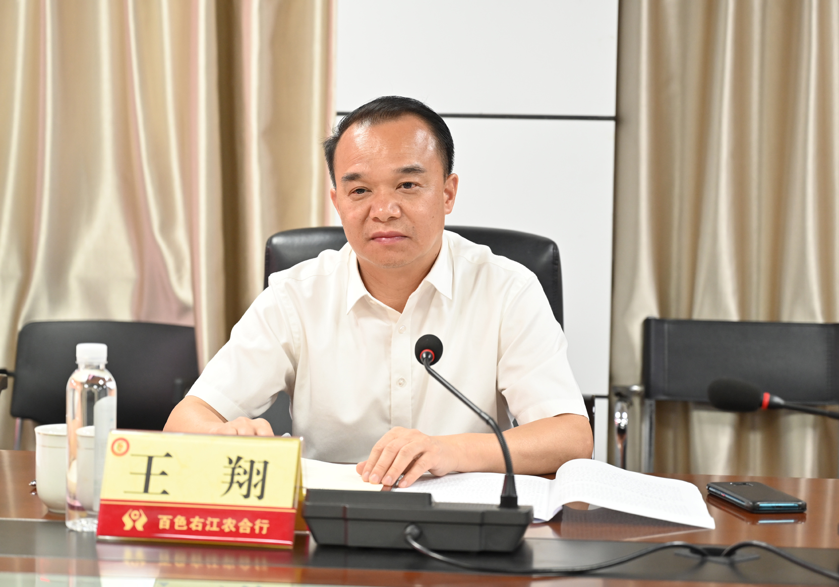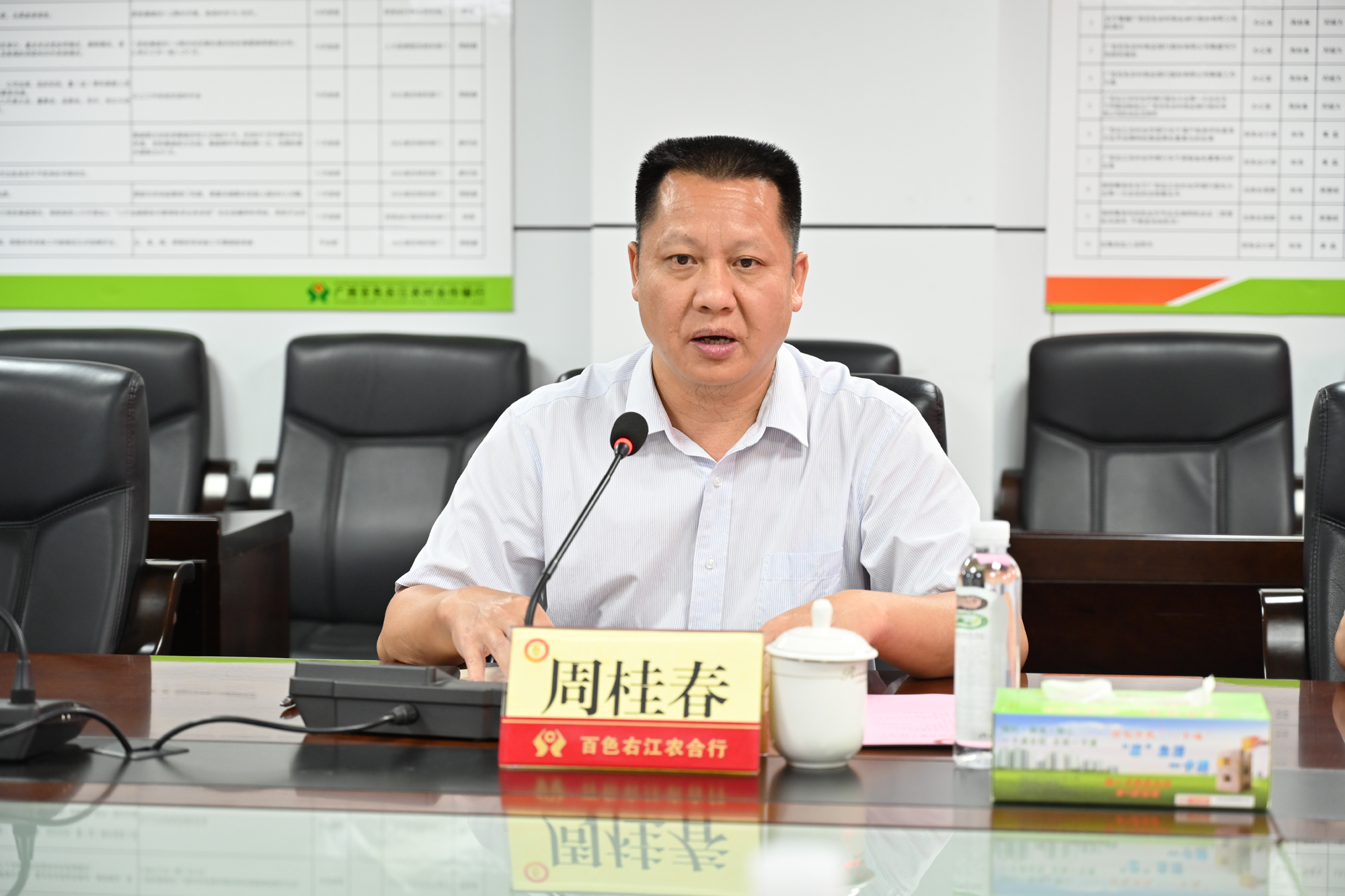 右江農合行黨委書(shū)記、董事長(cháng)周桂春作介紹發(fā)言