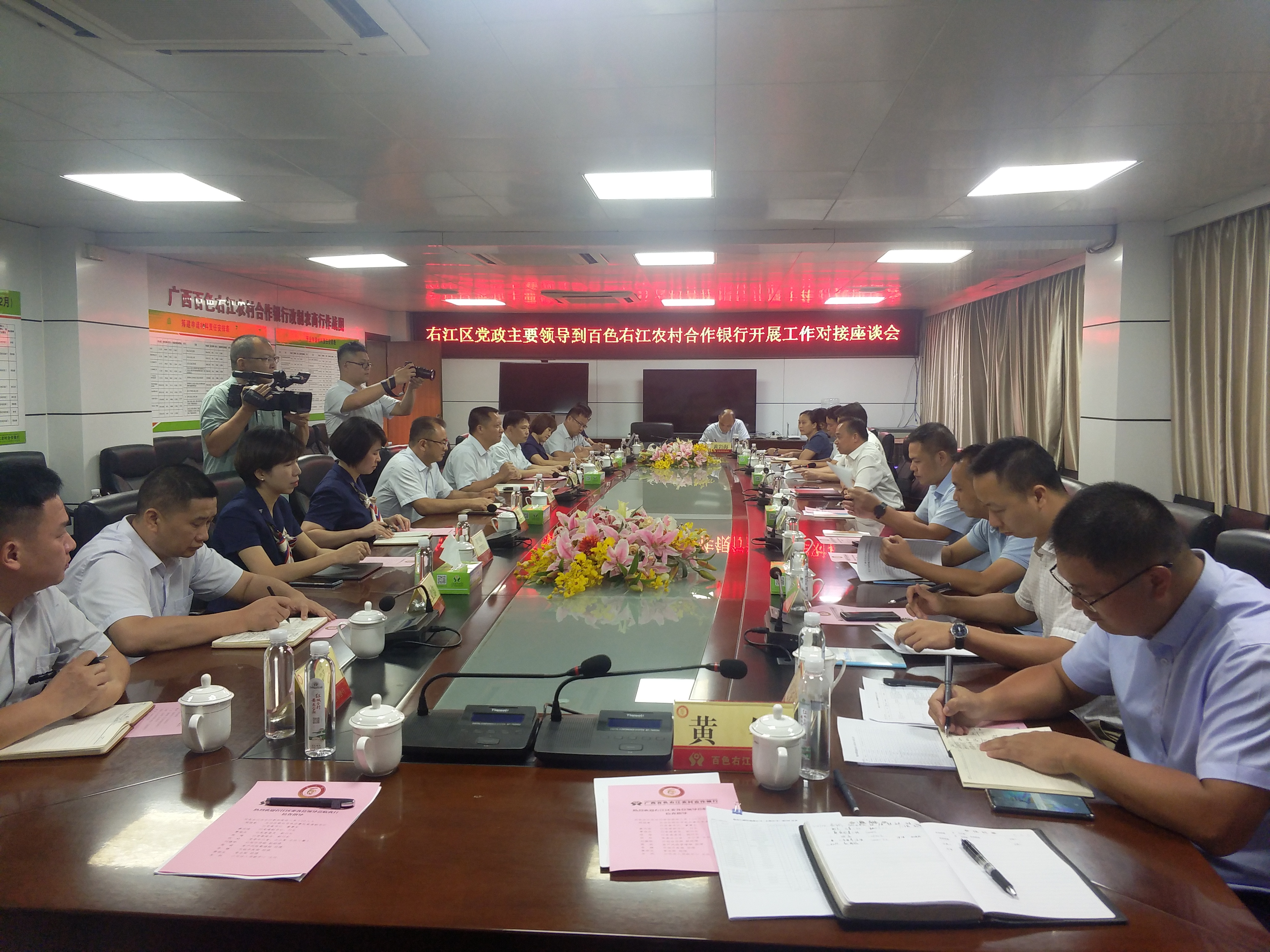 7月12日,右江區委主要領(lǐng)導王翔率隊到百色右江農村合作銀行開(kāi)展工作對接,雙方就政銀企合作事宜進(jìn)行深入溝通。自治區聯(lián)社百色辦事處黨委副書(shū)記、百色右江農村合作銀行黨委書(shū)記、董事長(cháng)周桂春,右江區領(lǐng)導盧靈、鄺生朝、李勇春等出席會(huì )議。益眾公司領(lǐng)導和相關(guān)部門(mén)負責人陪同座談交流。