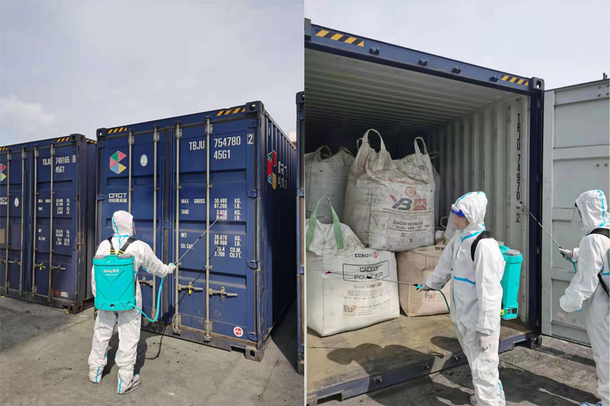 圖為貨物到達國際貿易港及清關(guān)消殺