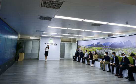 考察組一行先到北部灣產(chǎn)權交易所集團詳細了解其在農村產(chǎn)權交易中心建設與推廣取得的成果與經(jīng)驗,并就項目涉及的政策支持、合作與運營(yíng)模式、投融資形式、機構設置等問(wèn)題,與北部灣產(chǎn)權交易所集團副總經(jīng)理夏雋帶領(lǐng)的團隊進(jìn)行深入探討。隨后,實(shí)地參觀(guān)了貴港市覃塘區農村產(chǎn)權交易中心,各局辦負責人及公司相關(guān)人員分別就各自所涉及的工作和業(yè)務(wù)與貴港市覃塘區政府辦、農業(yè)農村局等工作人員進(jìn)行學(xué)習交流。