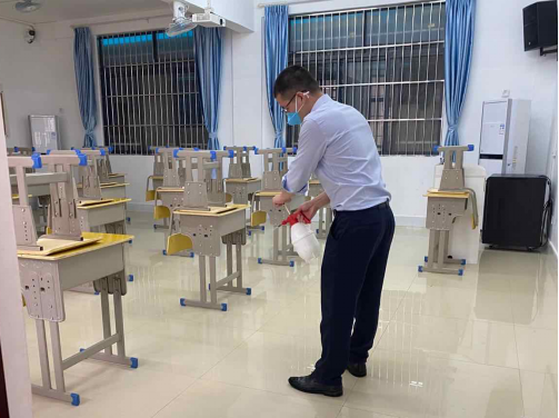 教職工對教室里里外外全面消毒殺菌