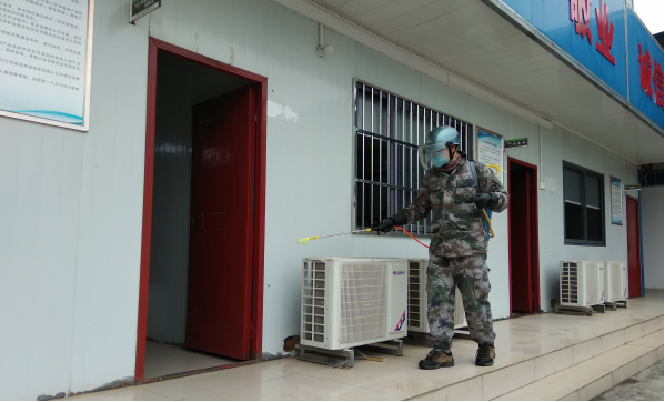 潤益商貿公司工作人員正在消毒辦公場(chǎng)所?
