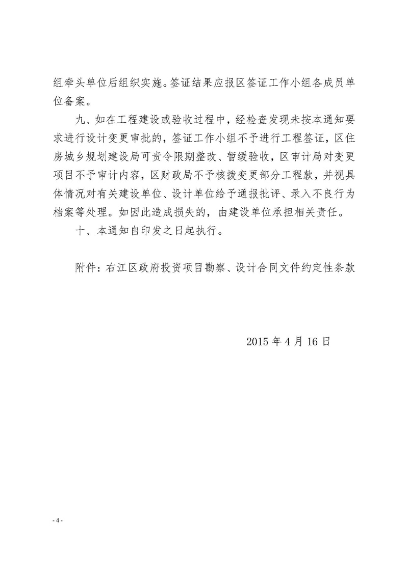 右政辦發(fā)[2015]25號 關(guān)于進(jìn)一步加強右江區政府投資項目簽證管理工作的通知