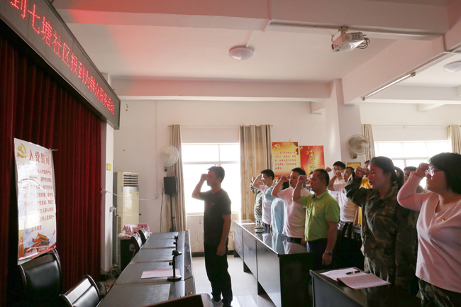 ????????之后,全體黨員重溫《入黨誓詞》?!拔抑驹讣尤胫袊伯a(chǎn)黨,擁護黨的綱領(lǐng),遵守黨的章程,履行黨員義務(wù),執行黨的決定......”,清澈嘹亮的聲音貫穿整個(gè)會(huì )場(chǎng),進(jìn)一步強化了黨員的責任意識。