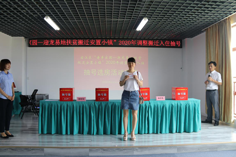 根據自治區扶貧搬遷專(zhuān)責小組《關(guān)于做好國扶系統易地扶貧搬遷對象調整相關(guān)工作的通知》文件精神,本次右江區迎龍安置點(diǎn)將調入(新納入)198戶(hù)761人。益眾公司抽調公司干部職工組成專(zhuān)項工作組,全力配合右江區脫貧攻堅戰指揮部開(kāi)展本次調整搬遷入住工作,較好地完成辦理抽號選房、簽約等一系列工作。