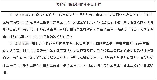 建設現代化鐵路網(wǎng)。堅持客貨并重、新建改建并舉、高速普速協(xié)調發(fā)展,加快普速鐵路建設和既有鐵路擴能改造,著(zhù)力消除干線(xiàn)瓶頸,推進(jìn)既有鐵路運能緊張路段能力補強,加快提高中西部地區鐵路網(wǎng)覆蓋水平。加強資源富集區、人口相對密集脫貧地區的開(kāi)發(fā)性鐵路和支線(xiàn)鐵路建設。推進(jìn)高速鐵路主通道建設,提升沿江、沿海、呼南、京昆等重要通道以及京滬高鐵輔助通道運輸能力,有序建設區域連接線(xiàn)。綜合運用新技術(shù)手段,改革創(chuàng )新經(jīng)營(yíng)管理模式,提高鐵路網(wǎng)整體運營(yíng)效率。統籌考慮運輸需求和效益,合理規劃建設鐵路項目,嚴控高速鐵路平行線(xiàn)路建設。