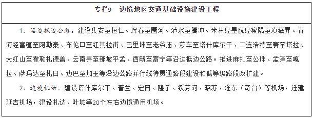 服務(wù)沿邊城鎮體系建設,以公路、機場(chǎng)為重點(diǎn),大力改善邊境地區交通出行條件,提升邊境城鎮人口集聚能力。統籌推進(jìn)邊境地區國省干線(xiàn)公路、農村公路等建設,全面完善國道干線(xiàn)主骨架,推進(jìn)沿邊公路并行線(xiàn)建設和低等級公路提質(zhì)改造,加快抵邊公路建設,盡快形成層次清晰、結構合理的沿邊公路網(wǎng)。穩步推進(jìn)邊境地區機場(chǎng)建設,構建多層級航空網(wǎng),擴大航空運輸服務(wù)覆蓋面。補強同江、二連浩特、阿拉山口、霍爾果斯、瑞麗、磨憨等口岸后方鐵路通道能力。加強抵邊自然村郵政設施建設,實(shí)現郵政服務(wù)普遍覆蓋。